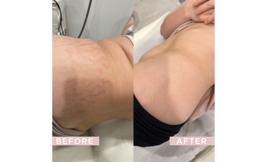 Stretch mark treatments aim to improve the skin’s appearance by encouraging collagen production, addressing redness and inflammation, and assisting in scar tissue remodelling, especially when performed during earlier stages.