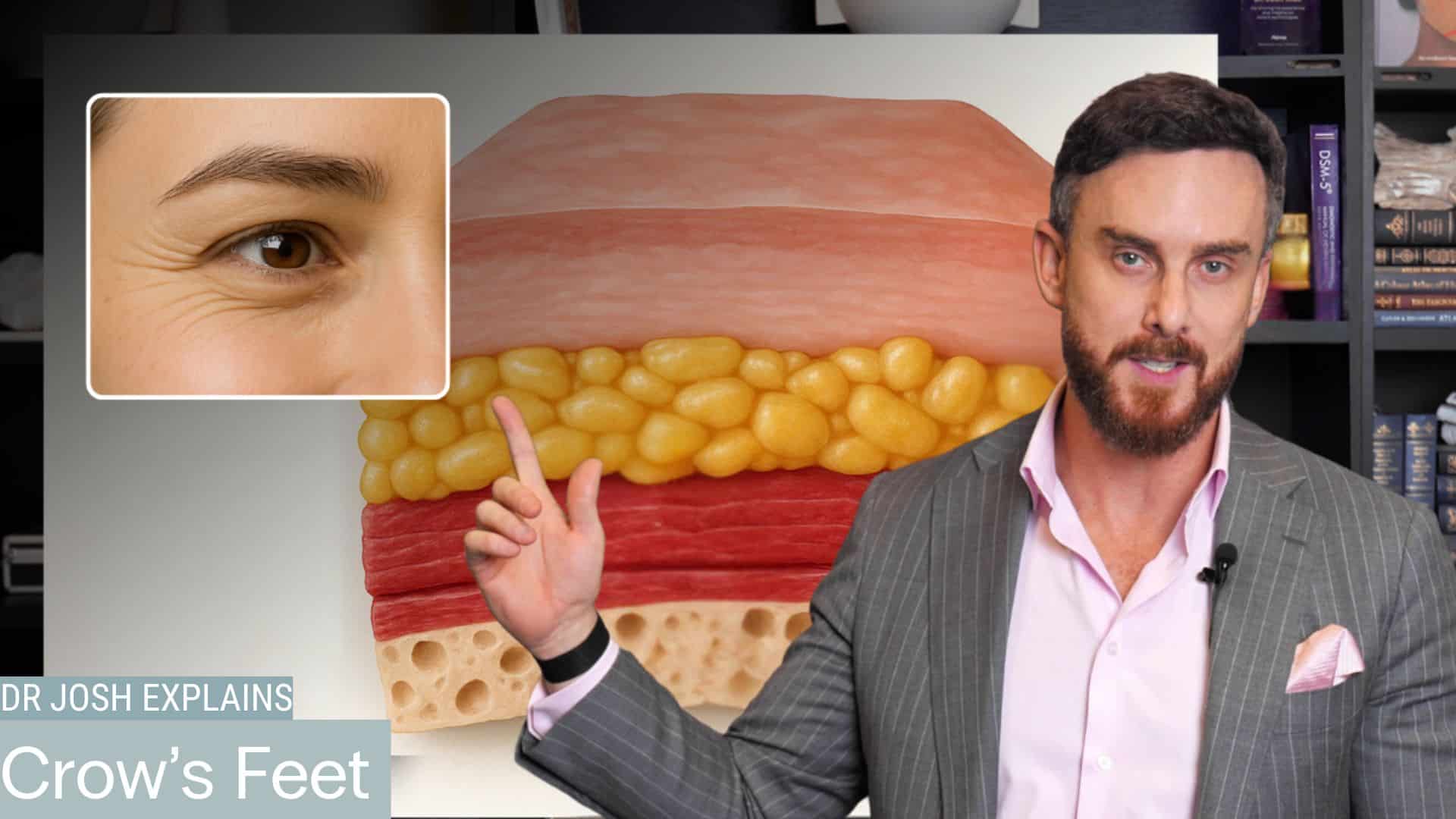 Crow’s feet wrinkles are caused by loss of skin elasticity, a decrease in subcutaneous fat in the face and overactivity of the orbicularis occuli muscle that surrounds the eye. They are common after the age of 20 and are a natural part of the ageing process. When we continue to smile, frown, squint or gasp, our skin is repeatedly creased in these areas. Over time, this may result in increasingly permanent lines that appear as wrinkling around the eyes.